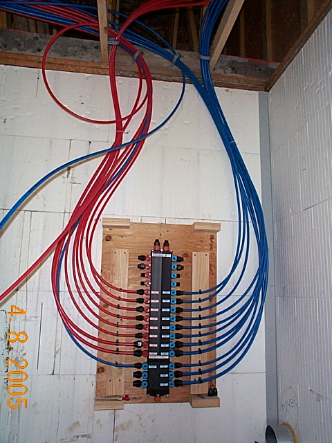 April 8, 2005 - Friday - Care must be taken to protect the PEX tubing when it runs through an opening in the steel studs or next to the edge of